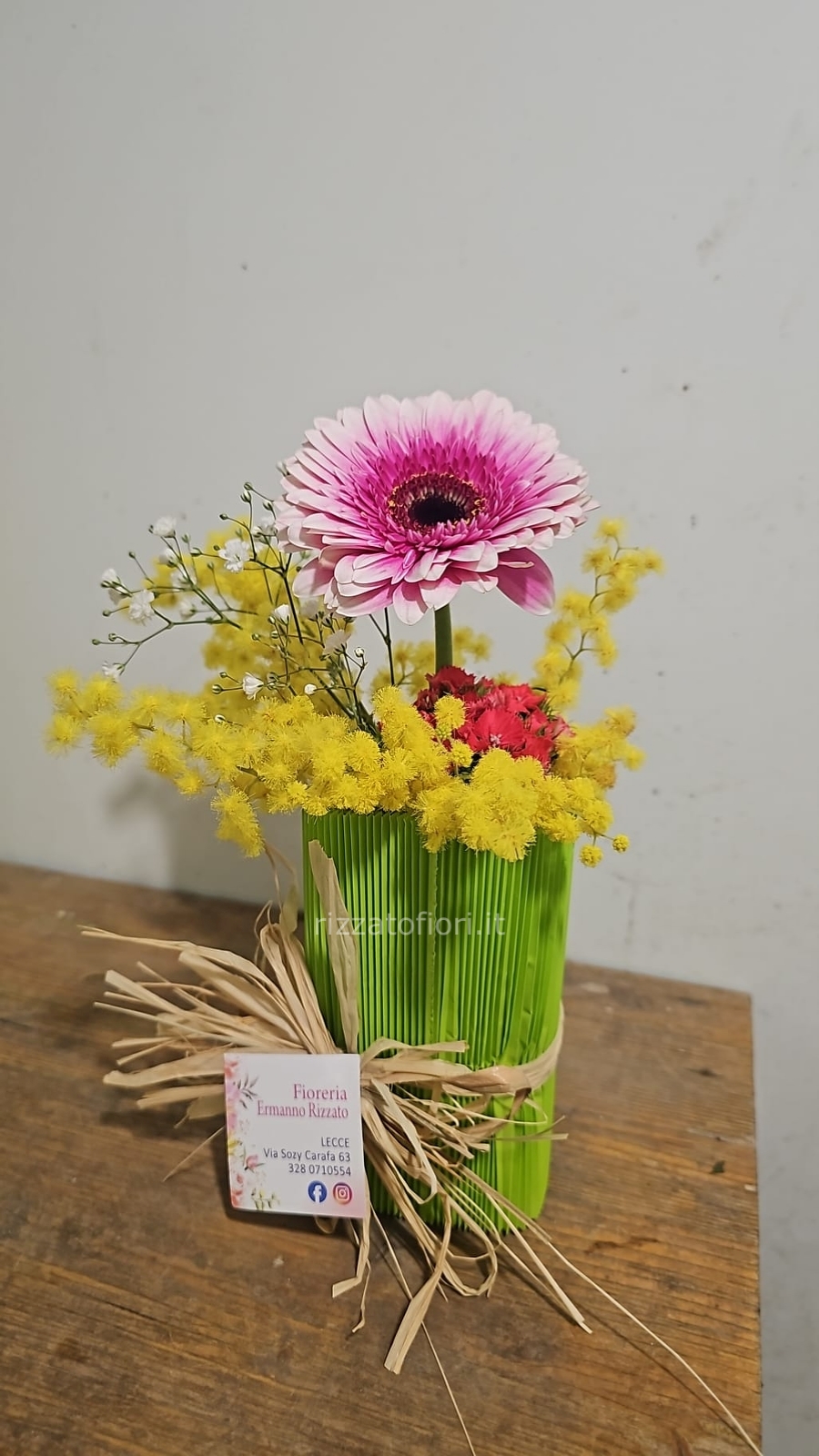 Grazie al nostro servizio di consegna fiori Lecce, puoi ricevere direttamente a casa tua una meravigliosa combinazione di gerbere e mimosa, perfetta per ogni occasione.